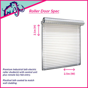 | Roller Shutter(s) | 2 x Premium Industrial lath electric roller shutters with remote key fob – 2.5m (W) x 2.1m (H). |