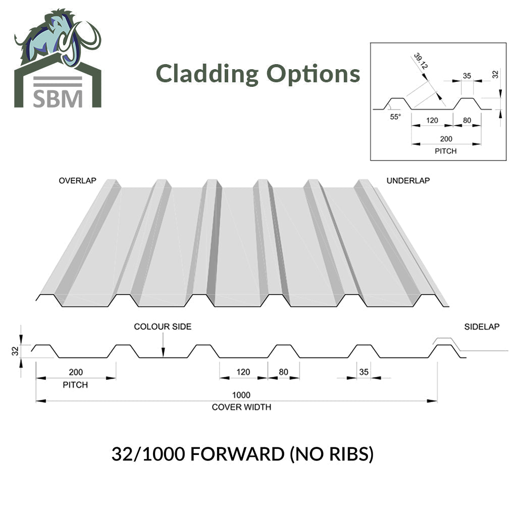 Plastisol Coated Single Skin wall sheeting 32/1000 box profile or Plastisol Finish 40mm Composite Insulated wall sheeting with box profile. As per priced in the options above. |